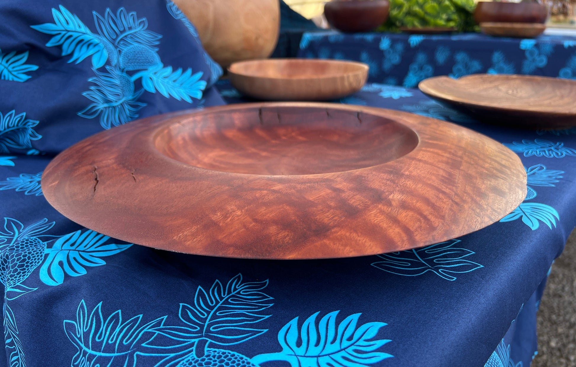 14” x 2” Kauai grown eucalyptus platter finished with a foodsafe walnut oil.